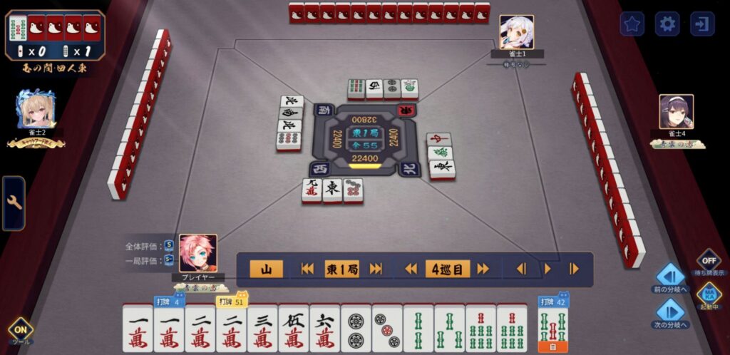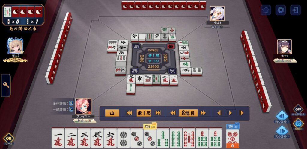 グダグダな感じの打牌でしたが、だいたい正解してました。